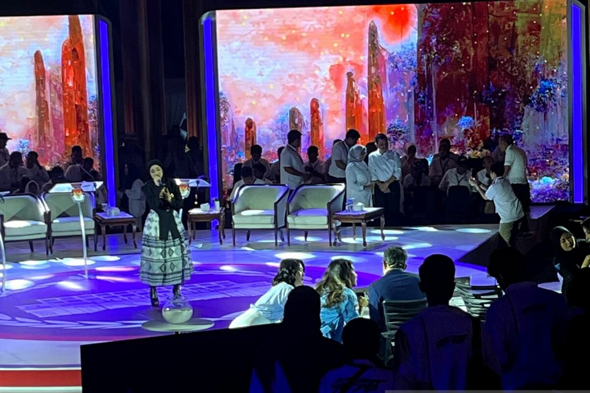 Jakarta (ANTARA) – Wakil Ketua Dewan Pembina PSI, Grace Natali, dan Sekretaris Jenderal PSI, Isyana Bagoes Oka, terpantau menghampiri moderator debat selama hampir satu menit saat jeda iklan antara segmen 2 dan 3 debat calon presiden (capres).