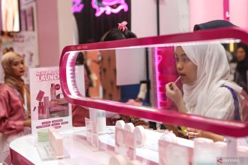 Seorang pengunjung mencoba salah satu produk kecantikan pada Pameran Jakarta x Beauty 2023 di Jakarta Convention Center, Jakarta, Minggu (17/12/2023). Pameran produk kecantikan yang diikuti lebih dari 300 brand lokal maupun internasional tersebut bertujuan untuk memenuhi kebutuhan produk kecantikan dan memberikan kontribusi bagi perekonomian negara. ANTARA FOTO/Asprilla Dwi Adha/foc.